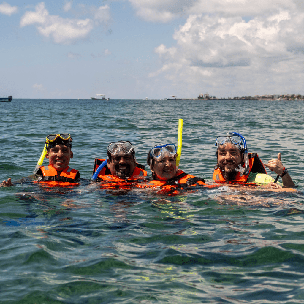 «Snorkeling + Coastal Delights was the perfect blend of adventure and indulgence! After exploring the stunning underwater realms, the beachfront feast at the Beach Club added a delicious touch to our day. Los Tribilines made our snorkeling excursion in the Riviera Maya truly special.»